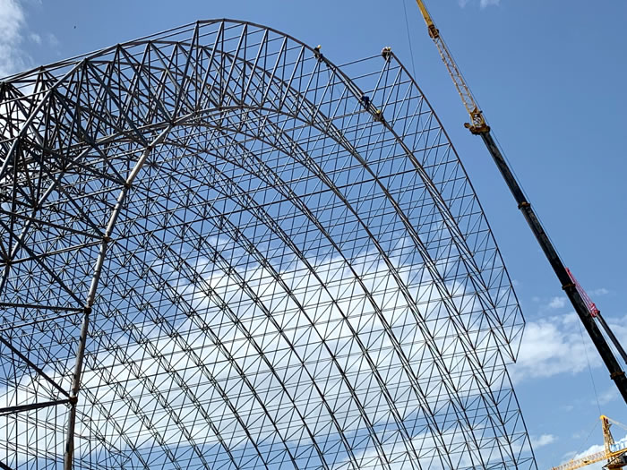 (2)网架加工前应对现场尺寸进行复测,确认无误后方可进行加工、安装;网架制作、运输、安装应遵守《空间网格结构技术规程》JGJ7-2010、《钢网架成都螺栓球节点》JG/T 10-2009、《钢网架成都螺栓球节点用高强度螺栓》 GB/T 16939-2016、《成都钢结构成都工程成都施工规范》 GB50755-2012、《成都钢结构成都工程施工质量验收标准》 GB50205-2020。